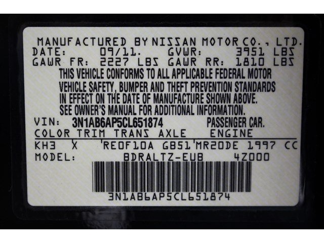 Are you interested in a simply great car? Then take a look at this stunning 2012 Nissan Sentra. This Sentra is an amazingly fuel efficient Nissan. No longer will you break the bank when you pull up to the gas pump. It is nicely equipped with features such as Sentra 2.0 SR, 2.0L 4-Cylinder DOHC 16V, CVT Xtronic, Black, Charcoal w/Sport Cloth Seat Trim, ABS brakes, Alloy wheels, Electronic Stability Control, Illuminated entry, Low tire pressure warning, Navigation, Power Sliding Glass Moonroof w/Tilt Feature, Remote keyless entry, Traction control, 6 Speakers, Air Conditioning, AM/FM radio, AM/FM/CD/MP3 w/6 Speakers, Anti-whiplash front head restraints, Bumpers: body-color, CD player, Driver door bin, Driver vanity mirror, Dual front impact airbags, Dual front side impact airbags, Front anti-roll bar, Front Bucket Seats, Front Center Armrest, Front fog lights, Front reading lights, Front wheel independent suspension, MP3 decoder, Occupant sensing airbag, Outside temperature display, Overhead airbag, Panic alarm, Passenger door bin, Passenger vanity mirror, Power door mirrors, Power steering, Power windows, Radio data system, Rear anti-roll bar, Rear seat center armrest, Rear window defroster, Security system, Speed control, Speed-sensing steering, Split folding rear seat, Spoiler, Steering wheel mounted audio controls, Suede Cloth Seat Trim, Tachometer, Tilt steering wheel, Trip computer, and Variably intermittent wipers.