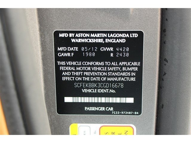 FEATURES ON THIS 2012 ASTON MARTIN VANTAGE INCLUDE: