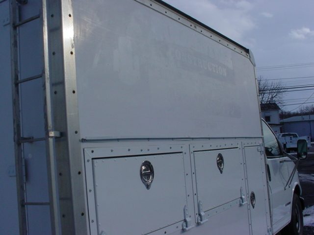 *THE UPPER FIBERGLASS PANELS ON SIDES OF UTILITY BODY SHOW SHADOWS OF PREVIOUS DECALS THAT WERE REMOVED ( SEE PICS)
