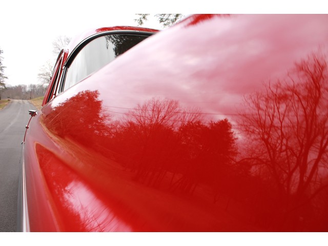 We will start off with the exterior of the exterior of the Customline. As we said this body was completely removed from the frame and every panel was removed and everything was worked until it was better than when it was new. All the panels were assembled to ensure a good fit before they were covered. Everything is covered in the Vicotry Red Base Coat Clear that has been buffed and polished to a deep rich shine. All new glass and weather stripping was installed. All the chrome looks either new or in like new condition. The side stainless as well as the window trim was cleaned and polished before it was reinstalled. The final exterior touch is the set of 18” and 20” American Racing Wheels.