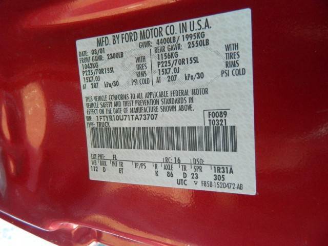 • VIN: 1FTYR10U71TA73707