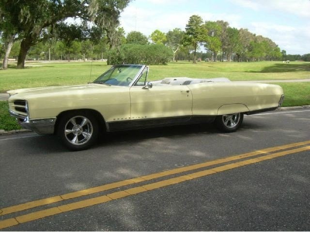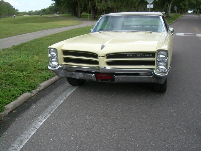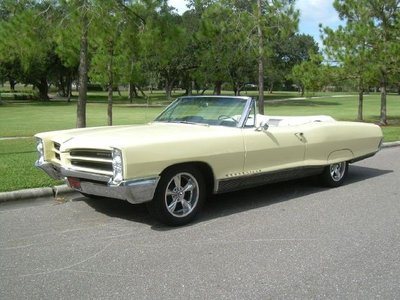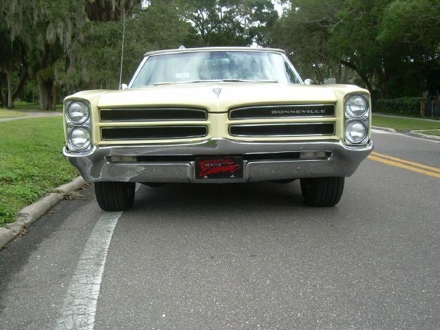 1966 Pontiac Bonneville Convertible for Sale. Pontiac enthusiasts and Convertible lovers, take a look at this great full size cruiser from Pontiac! Powered by Pontiac's famous 455 CI with aluminum intake, Edelbrock Carb and air breather and backed with an automatic transmission, power steering, power brakes, and factory air conditioning. With room for family or friends, this spacious Convertible is ready for sunshine cruising! Other features of this very original, highly optioned 60's classic include power seat, power top, AM/FM stereo, remote control mirror, a tilt steering column, and color keyed skirts. The car rolls on a set of Streeter Show Wheels carrying Falken 235/55ZR 17's on all four corners. Rare and super straight, this Pontiac Bonneville is sure to turn heads wherever you cruise!