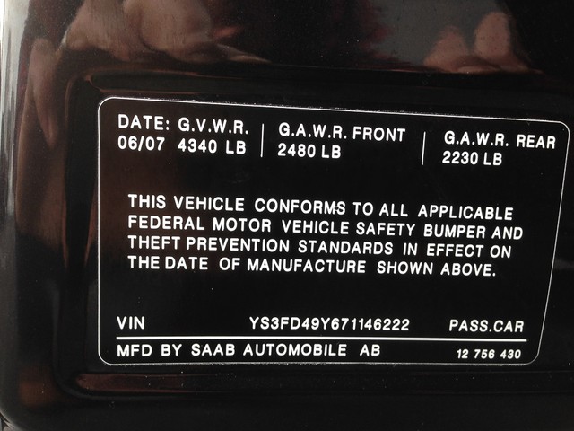 White’s Auto Sales is excited to offer you yet another quality Sweedish Saab product.  This is our 2007 Saab 9-3 2.0T 60th Anniversary Edition Sport Sedan finished in beautiful Tuxedo Black.  This Saab is powered by the High Output turbocharged and intercooled 4-cylinder 2.0L Eco-Tec that produces an impressive 210 hp and 221 lb ft torque!  The 5-speed auto-manual transmission makes it a blast to drive and with an estimated 22 city / 30 hwy MPG rating, there’s not much to complain about economically!  To top it off, we guarantee that it comes with a clean and clear Carfax Report and PA Title History, not to mention that it is PA State Inspected and Emissions Safety Certified throughout 10/14.