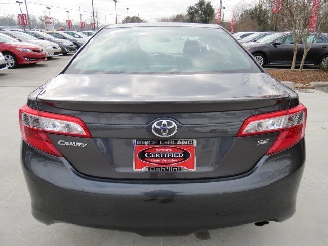 PRICED TO MOVE $200 below NADA Retail!, EPA 35 MPG Hwy/25 MPG City! CARFAX 1-Owner, Toyota Certified, Excellent Condition. SE trim. iPod/MP3 Input, Bluetooth, CD Player, Aluminum Wheels, Head Airbag, Heated Mirrors, Local Trade READ MORE!KEY FEATURES INCLUDEHeated Mirrors, iPod/MP3 Input, Bluetooth, CD Player, Aluminum Wheels. Rear Spoiler, MP3 Player, Remote Trunk Release, Keyless Entry, Child Safety Locks. Local Trade.EXPERTS REPORTKBB.com explains Arguably better in every measurable way, the thoroughly tweaked 2012 Toyota Camry has what it takes to retain its already bountiful buyer base.. Great Gas Mileage: 35 MPG Hwy.A GREAT VALUEThis Camry is priced $200 below NADA Retail.BUY WITH CONFIDENCE160-Point Inspection and Reconditioning, Vehicle History Report, 12-Month/12, 000-Mile Comprehensive Warranty from date of purchase, 7-Years/100, 000-Mile Powertrain Warranty from date of purchase as new, 1 Year of Roadside AssistanceVISIT US TODAYPrice LeBlanc Toyota has been serving Baton Rouge, Gonzales, Prairieville, Maurpeas, St. Gabriel, Iberville Parish, Donaldsonville, LaPlace and Gramercy for over 40 years. You'll know our commitment to Customer Service is second to none. From our showroom and service department to our Tropical Smoothie Cafe' to our three different waiting areas you'll see that we're here to please you. With a huge selection of new Toyota cars, trucks, SUV's, Scions, and Certified used Toyota vehicles.Pricing analysis performed on 2/8/2014. Horsepower calculations based on trim engine configuration. Fuel economy calculations based on original manufacturer data for trim engine configuration. Please confirm the accuracy of the included equipment by calling us prior to purchase.