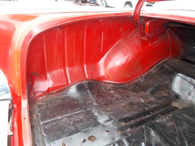 IT IS BEAT A BIT ON THE TRIM AND SOME GLASS IS CRACKED. THE TIRES ARE GOOD BUT A SET OFF RIMS WOULD BE A NICE START TO GIVING HER A BETTER LOOK. THEY ARE PRETTY PITTED. THE OUTER CHROME NEEDS REDONE BUT THEY ARE VERY RECHROMABLE. INTERIOR IS OLD BUT GOOD ENOUGH IF DRIVER. ONLY 2 SPLITS ABOUT 3" LONG IN TOP OF BACK SEAT.