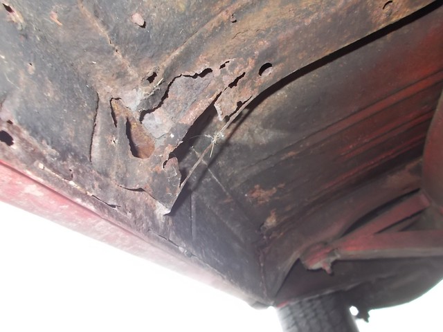 THE ONLY RUST HOLES IT HAS EVER HAD, IT STILL HAS. THEY ARE 4 OF THE FLOOR SUPPORTS NEXT TO THE ROCKERS, 2 ON EACH SIDE. AND THE LEFT INNER ROCKER HAS 3 SMALL HOLES. THE RIGHT INNER ROCKER HAS ONE AND MAYBE A 6" AREA ON DRIVER FLOOR NEXT TO ROCKER. I LOOKED ALL OVER THIS CAR IN THE AIR WHEN I BOUGHT IT AND THAT IS IT. GARAGE KEPT PAYS OFF.