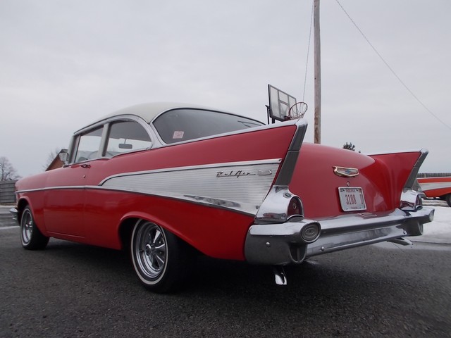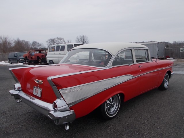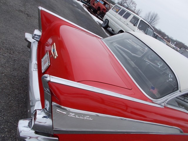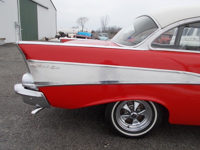 TRUE 57 BELAIR KNOWN BY THE C IN THE VIN. NO LETTER V  IN FRONT OF THE C MEANS IT CAME WITH A 6 CYLINDER. BUILT IN ST LOUIS KNOW BY THE S IN VIN AND ON COWL TAG. THIS A VERY SOLID ORIGINAL METAL CAR AND THAT IS ONE OF THE BEST THINGS ABOUT THIS CAR. ITS STRAIGHT EXCEPT WHERE IT WAS BACKED INTO SOMETHING ON RIGHT TAIL FIN THAT LIGHTLY DAMAGED SOME TRIM AND METAL. EASY TO REPAIR.