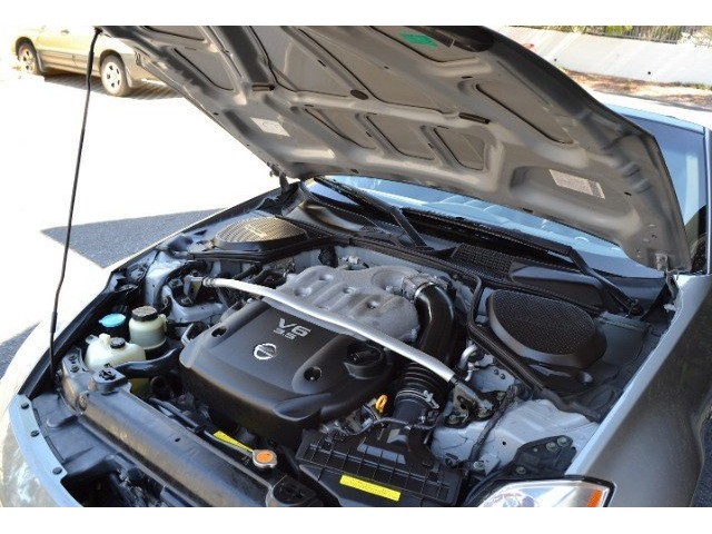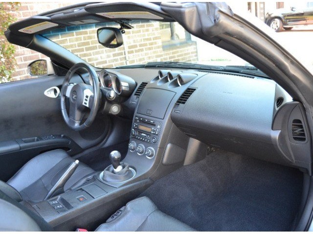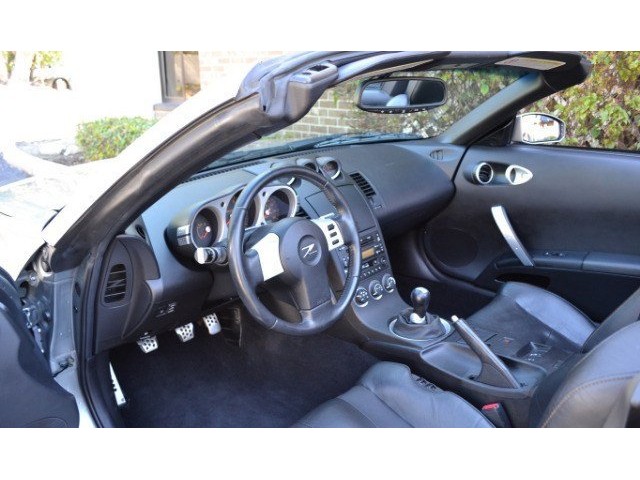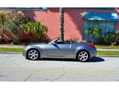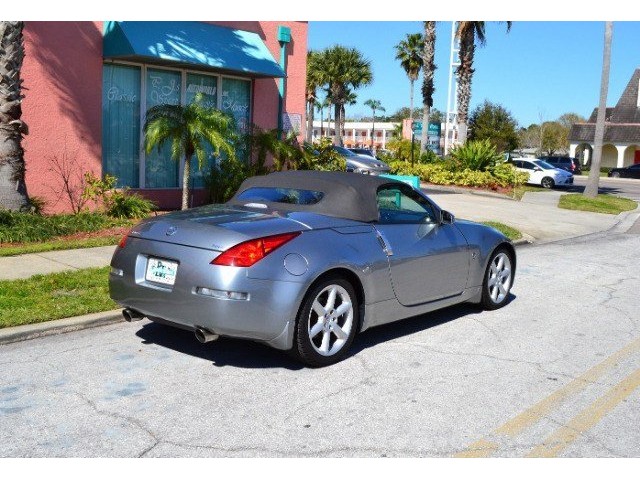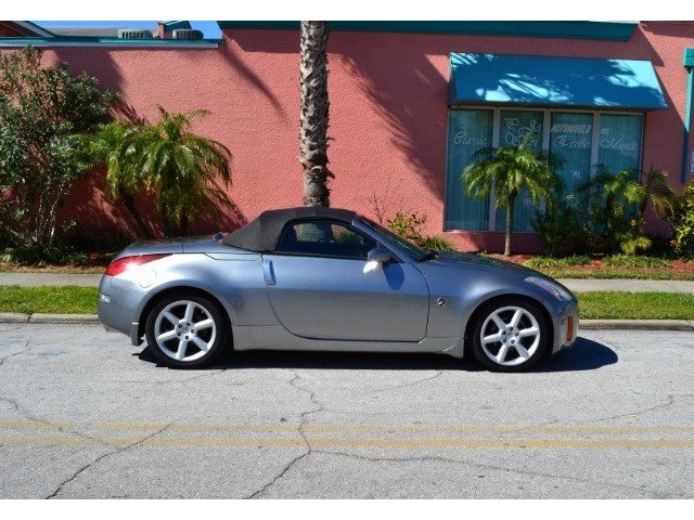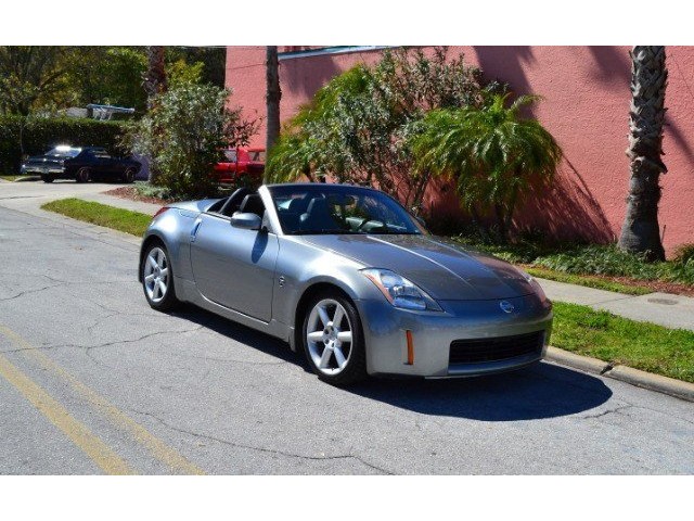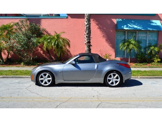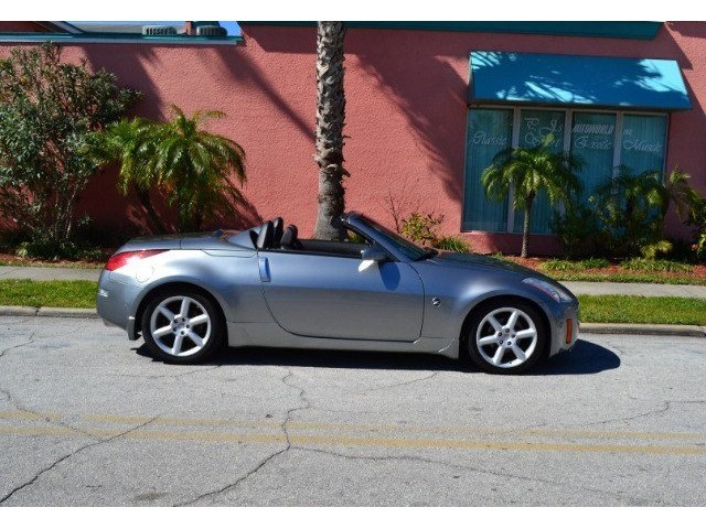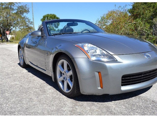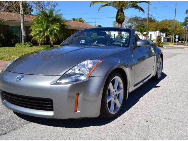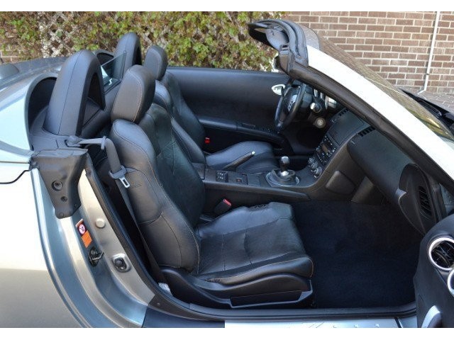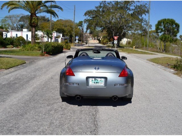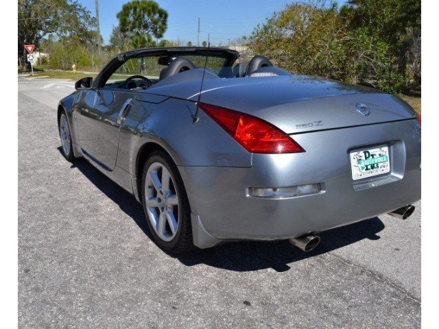 2005 Nissan 350Z Convertible for Sale. Two Owner Car with 58,324 miles. 3.5L V6 engine, 6 speed manual transmission, power steering, A/C, 4 wheel disc brakes, 18 factory alloy wheels, Chrome Silver Clearcoat Metallic exterior, black power convertible top with rear defroster, Key-Less entry, power windows, power remote mirrors, power heated leather bucket seats, tilt steering column, cruise control, Bose AM/FM/CD/Cassette radio, Navigation. Drop the top and go for a ride! This Z Convertible is ready for fun!