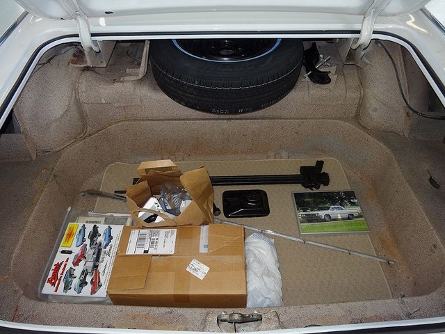 1963 Oldsmobile Dynamic 88 Holiday, Two Door Hardtop Exterior color is Arctic White single stage acrylic enamel paint. Interior is tri-tone blue vinyl all original and in beautiful condition with no tears or wear. It comes with the numbers matching 394 2-barrel/280 HP engine, highly detailed! Automatic transmission, the chrome and stainless steel are all in excellent condition. Power steering, power brakes, rear antenna and drivers side outside mirror. The front and rear bumpers newly replated. All new radial white wall tires, including the spare. It has a new hood pad, power steering pump, water pump, fan clutch, alternator, fuel pump, belts, hoses, has had a complete tune-up, and comes with date coded wires, battery and cables. One thousand miles ago, the brakes were checked and had a Front end alignment done with all fluids changed (400 miles ago). Interior features: New carpet, sill plates, and armrest pads. Interior chrome is spotless. AS mentioned it is the tri-tone optional vinyl interior. Trunk is still all original with original cardboard and still looks great. A real "no hit car", the body lines are SUPER. The underside of the car is spotless and rust-free. The air-conditioning has been changed over to 134. Clock and radio n/w. Heater does not work although blower and A/C work with no problems. Heater core leaks and is looped out. Car comes with service manual, owner’s manual, sales brochures, some receipts and Motor Trend Road Tests from 1963. Also ownership documents and title transfer for ten years in Arkansas. This car has only 39,000 original miles.