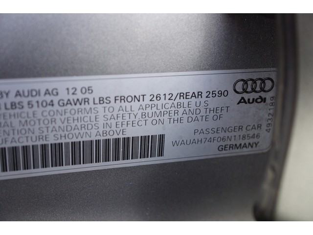 Hi! For sale is a 2006 AUDI A6. It has  112K miles. The color option of this vehicle is beautiful gray metallic paint with black leather interior. The exterior is in great shape. The paint is swirl free and shiny. No dents or scratches.Interior is super clean. Seats are also in great condition. All electrical components are functioning properly.Transmission is shifting smoothly, engine does not have any problems. There are no warning lights on the dashboard. Suspension is quite and tight.Tires are in good condition.No accident history.