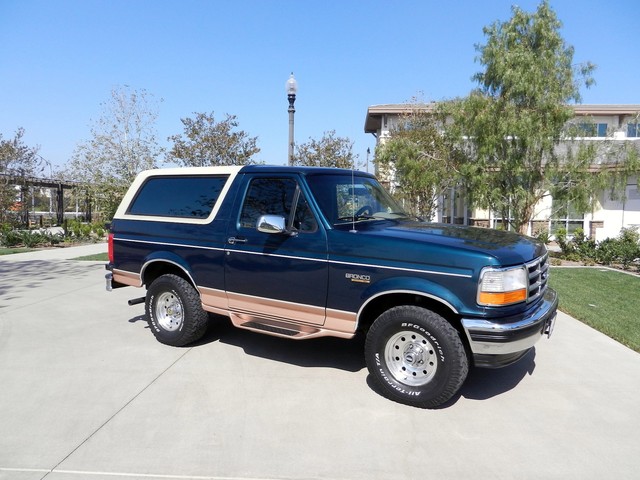You are viewing one of the cleanest Broncos we have come across. This gorgeous, all original, to include the paint, 1994 Ford Bronco Eddie Bauer Edition is a cream puff. The interior and exterior are in excellent condition. The exterior color is a gorgeous Dark Tourmaline Metallic. Carpets and the dash are NOT ripped or cracked. A/C blows ice cold and the heater works well. Accident-Free, rust-free, 100% California Bronco (Please see the FREE AutoCheck ® report below).
