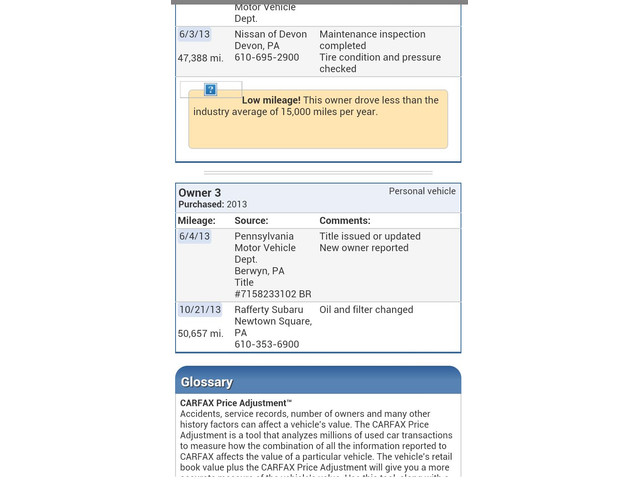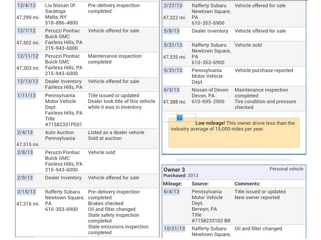 We often use these services to check a vehicles background.  Carfax and Autocheck are wonderful services,  but they have their limitations.  Many times they will show more “owners” than we may state a vehicle has had.  This is because they are an information service only.  They have never seen the car, owned the car,  and have no other information about the car than what is reported from different agencies.  All of this information is originally hand entered into their databases at their source and mistakes and inconsistencies will occur !  For example when a dealer such as ourselves purchases a vehicle they may pick it up as a new owner when this is of course not the case as dealers are not end users.  Also they often contain mileage errors and inconsistencies that appear to make little sense.  Just like any computer generated information report you need to know how to read the report & when to read between the lines. Having seen thousands of these over the years we can help you understand the information listed in these reports,  just ask.