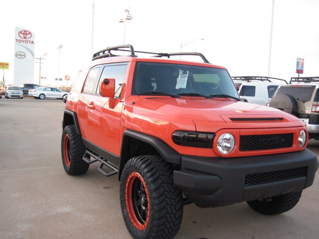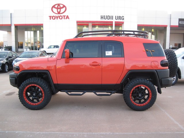 New 2014 Magma FJ with 3" rough country lift w/ 20" wheels. This vehicle has had the top, mirrors, and door handles painted to match. I spray lined the bumpers and blacked out the tails, mirror lights, and front blinker lights. This one has been tinted and has a black exhaust tip. Its another one of a kind FJ that we have here and available now. It is for sale and can sell at anytime. If you are interested please call me and we can discuss pricing. 405.227.6083 and ask for Randy.