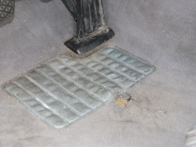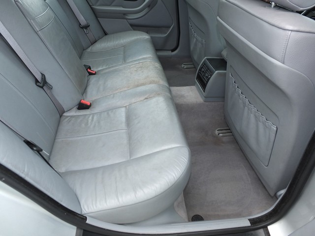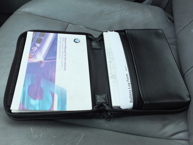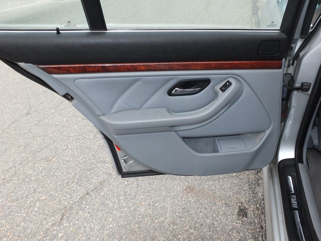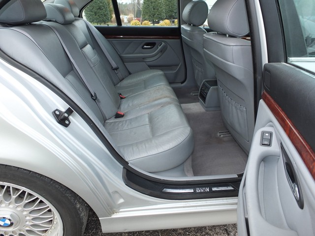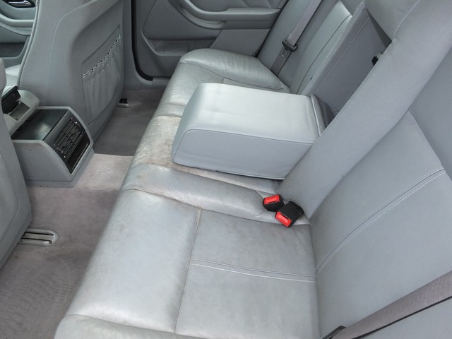 THE INTERIOR OF THIS BMW LOOKS DECENT OVERALL, BUT NEEDS SEAT DYE REPAIR, SOME SEAT LEATHER REPAIR, AND A GOOD DETAILING.  THE DASH, WOOD TRIM, AND DOOR PANELS LOOK GOOD.  THE CARPET IS CLEAN, BUT THERE IS A HOLE IN THE DRIVER'S FOOTWELL.  THERE ARE NO FLOOR MATS.  THE HEADLINER NEEDS A LITTLE CLEANING, BUT LOOKS GOOD OTHERWISE.  THERE IS SOME PET HAIR IN CREVASSES, BUT NO ANIMAL SMELLS INSIDE.  THERE IS ALSO NO SMOKE SMELL.  THE DRIVER'S SEAT FORE/AFT ADJUSTMENT SWITCH IS LOOSE, BUT WORKS FINE.  OVERALL THE INTERIOR LOOKS PRETTY GOOD, BUT THE SEATS DO NEED SOME WORK.  THERE IS AN AFTERMARKET BRACKET MOUNTED ON THE CENTER CONSOLE BESIDE THE SHIFTER.  WE DON'T KNOW WHAT IT WAS FOR.