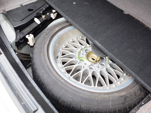 THE ALLOY WHEELS LOOK GOOD OVERALL WITH ONLY MINOR BLEMISHES.  THE FULL-SIZE SPARE IN THE TRUNK HAS A MATCHING RIM ON IT.  THE FRONT TIRES HAVE ABOUT 60% OF THEIR TREAD-LIFE REMAINING, AND THE REAR TIRES HAVE ABOUT 50%.