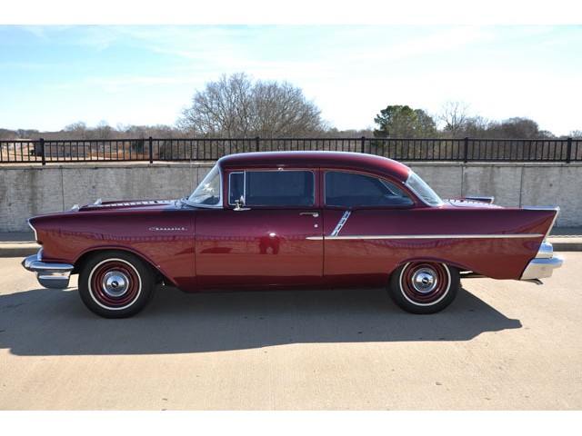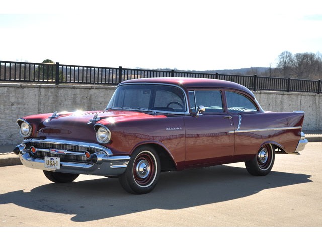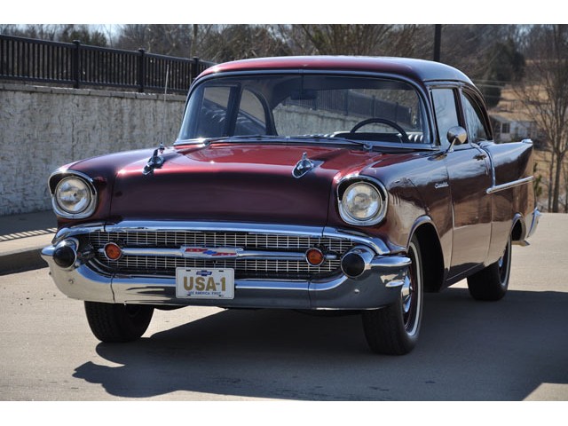 A rare find... this 1957 Chevrolet 150 car. That "Plain Jane" sleeper look is timeless, here we have a 150 car that is very solid and straight. The paint is nice driver quality and appears to have a few years on it. The car presents itself well and is not rusty. The looking at all of the panels, the alignment is very good. The quarter panels,floors,rockers and trunk pan are all solid. The car is lightly undercoated underneath, and not patched up. A small amount of bodywork is showing in the lower rear section of the left door and the lower front section of the right door. Nothing major just being really informative. The chrome and britework is in great original condition, the front bumper is showing some age, not rusty just not a brite as it should be. All of the other britework is great. The windshield has a couple of rock pecks in it but not in your line of sight. The side glasses are new and tinted and the rear glass is original and very nice. Under the hood resides a 1972 350 V-8 backed by a turbo 350 transmission. The car runs rides and drives great! Power front disc brakes were added along with dual exhaust, Offenhauser intake manifold and Edelbrock carb. On the inside a Black vinyl interior was installed, It is in great condition with no known damage. All of the lights and gauges are in working order as well as the wipers, radio and horn. The tires are newer radials with color matched wheels and poverty caps to round out the 150 sleeper look. The car is solid enough to  invest more money making it a resto mod, good enough now to leave alone and enjoy... thats the beauty of this one! Call Scott for further info at 615-476-1195. DO NOT HESITATE TO CALL... THESE CARS GO FAST! This car is for sale locally and we reserve the right to end this auction in the event of its sale. Tn residents will pay all applicable tax ,tag and doc fees. All out of state buyers will pay a $124.95 doc fee and a .003% tax required by my state on all out of state sales. (about 30 bucks on 10k) Thanks and please check out my other auctions! TNRODS