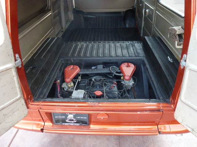 This Van starts right up and idles smoothly. The clutch works great and the transmission shifts smoothly. The owner told us this has the bigger engine in it but im not sure how to tell. The front interior is in great condition. The seat appears to be newly recovered and the carpet is also in great condition. The entire bottom of the cargo area has been rhino lined and it is ready for whatever interior you choose.  It has been sitting for a few months and probably has old gas in it so it runs a little rough under a load but I think it will just run better and better the more you drive it. I would reccomend having the carbs syncronized and re adjusted. But other than that she is ready to roll. This is as beatiful to me and even more rare than the VW Vans. So dont let this one get away they are getting next to impossible to find espessially in this condition.