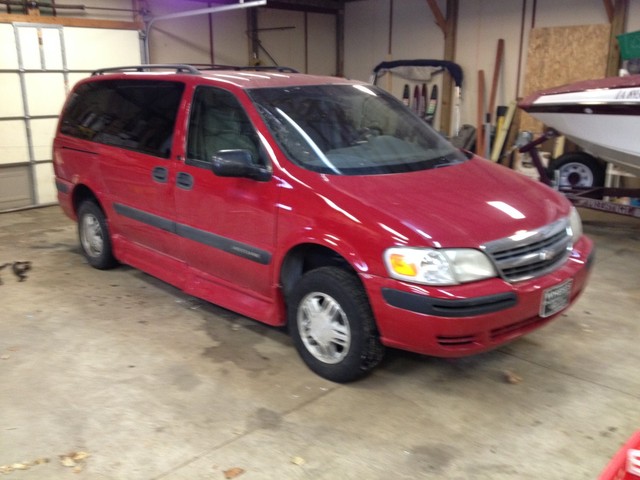 NO RESERVE 2001 CHEVY VENTURE ACTIVAN.PLEASE FEEL FREE TO COME AND INSPECT THIS YOURSELF BEFORE BIDDING. ONE OWNER WITH 72,992 MILES!!! WE HAVE NOT HAD ONE OF THESE BEFORE AND THESE VANS ARE VERY UNIQUE, THEY DROP THE FLOOR DOWN 12 INCHES! VAN RUNS AND DRIVES GOOD. MUFFLER IS A TAD LOUD BUT NOT BAD. HAS ELECTRIC LIFTED LIFT. HAS ONE SWITCH FOR UP AND DOWN ON RAMP. HAS A FEW HOLD DOWNS FOR WHEELCHAIR. BODY IS IN GOOD SHAPE FOR YEAR. TIRES ARE AROUND HALF TREAD. PLEASE FEEL FREE TO CALL ME (DARREN ) AT 319-239-6900 WITH ANY QUESTIONS. I WOULD LIKE TO GET SOMEWHERE AROUND 6,000.00 FOR IT.