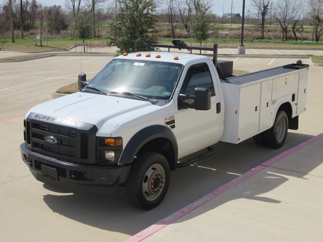 HAVE LOOK AT THIS TEXAS OWN ONE OWNER ACCIDENT FREE FULLY SERVICE ,SEE ALL THE RECORD ON CARFAX REPORT.THIS 2009 Ford F-450 2dr Regular Cab Utility Long Bed 2WD (6.8L 10cyl) with Oxford White Clearcoat Exterior, Brown Interior. Loaded with 6.8L V10 EFI Engine, 2WD Automatic Transmission, cloth Seats, 3-Passenger Seating, Cruise Control, am/fm audio System,  Towing View  Mirrors, Trailer Hitch, 17 Inch Wheels and more.