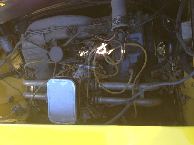 Engine looks to be a 1.8 liter, it has the four stud heads, with a 2 bbl carb.