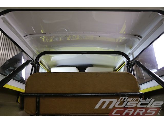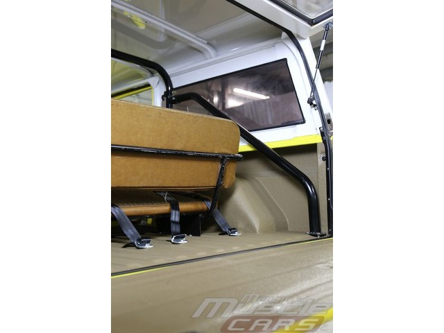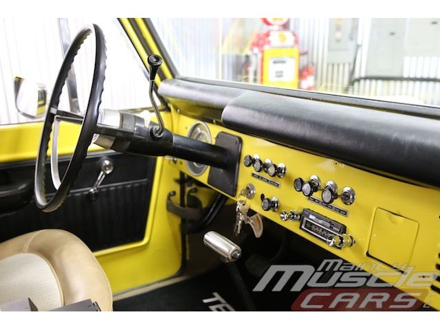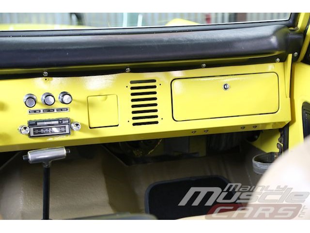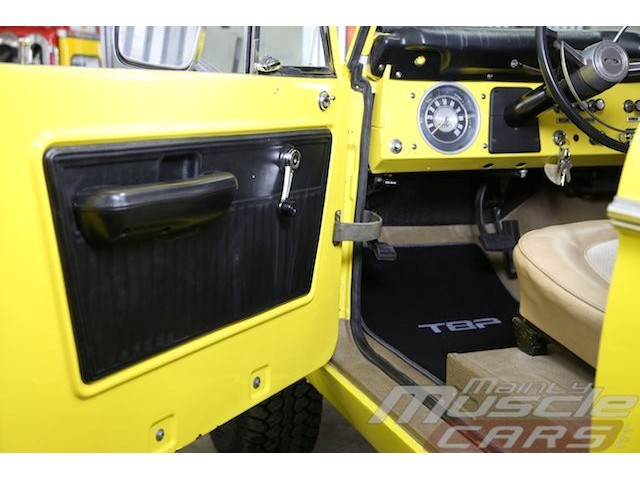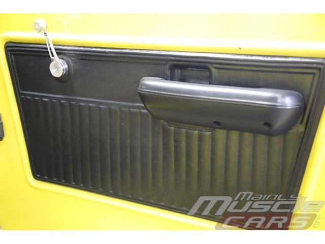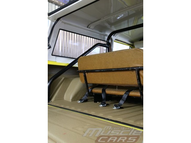 The interior is in very good condition. The front seats have been re-upholstered. The rear seat still wears its original upholstery. 3-Point seat belts were installed for the front seats and new seat belts installed in the back. The floors were stripped, panels were added to protect the front floor pans from wear and then the whole tub was lined in a tan bedliner. It is very durable and can be easily swept or hosed out if needed. A locking center console was added to secure valuables and add a comfortable arm rest & drink holders. For ease of use, rear gas struts have been installed on the rear window liftgate.
