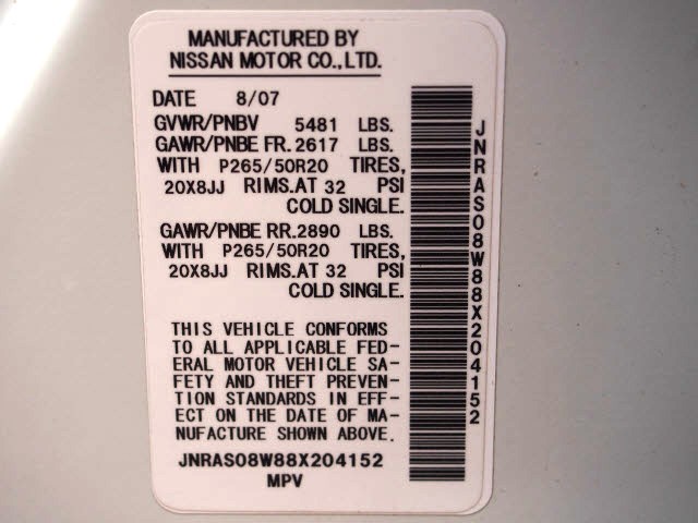 • VIN: JNRAS08W88X204152