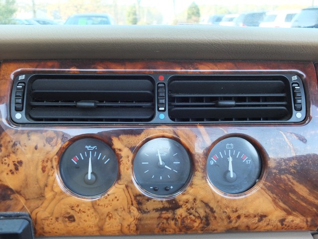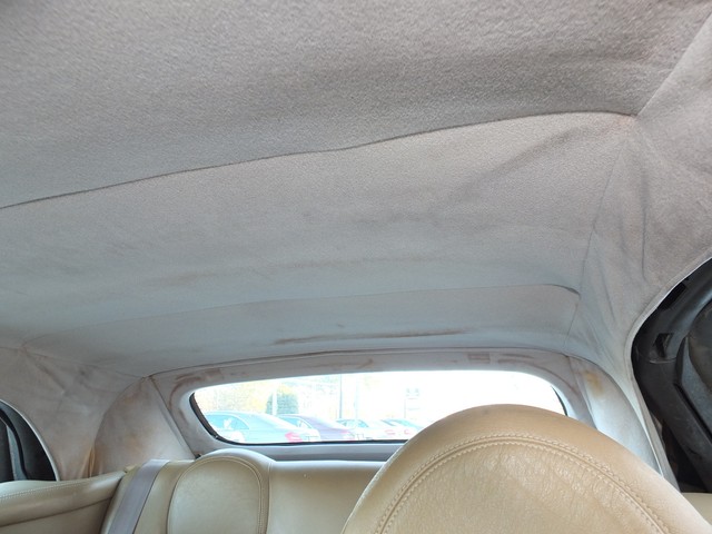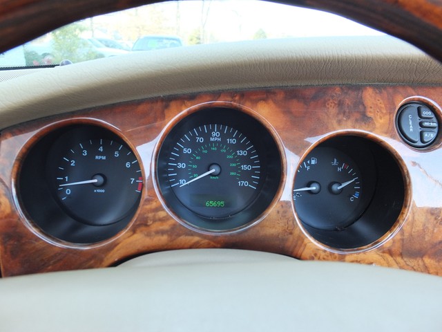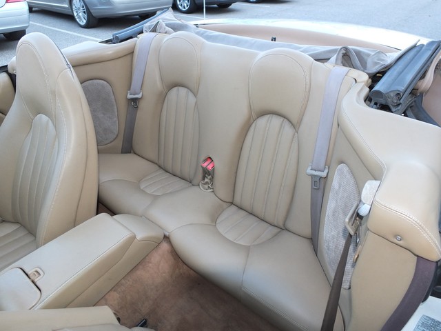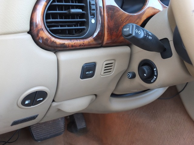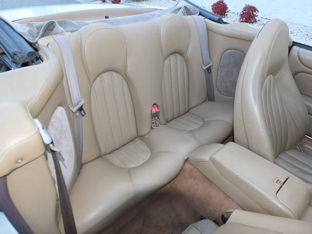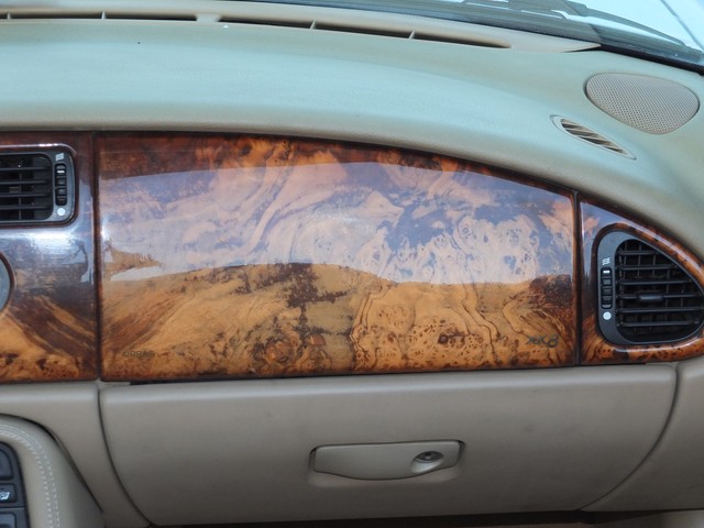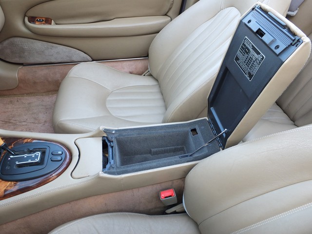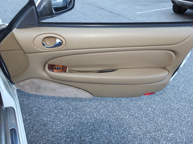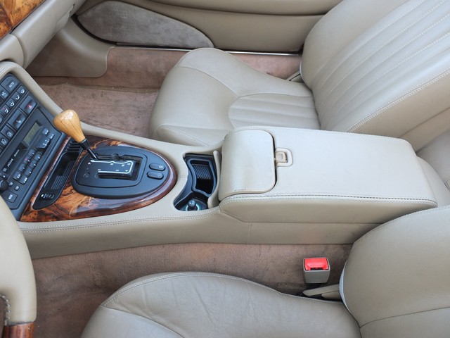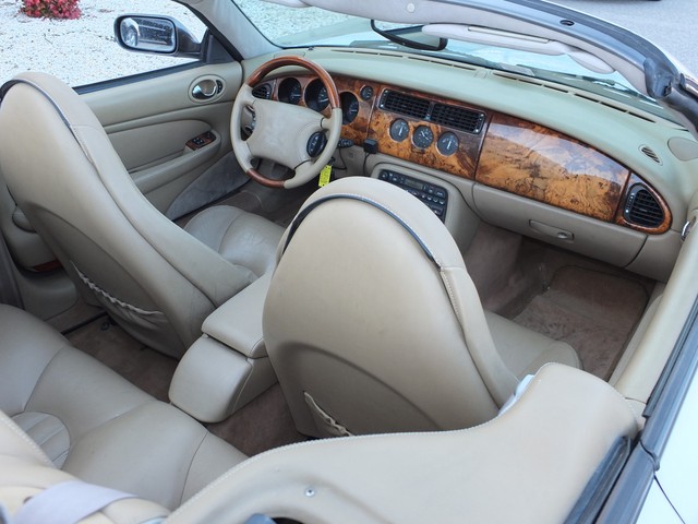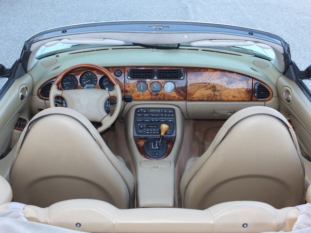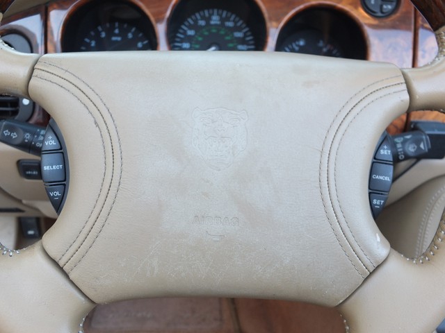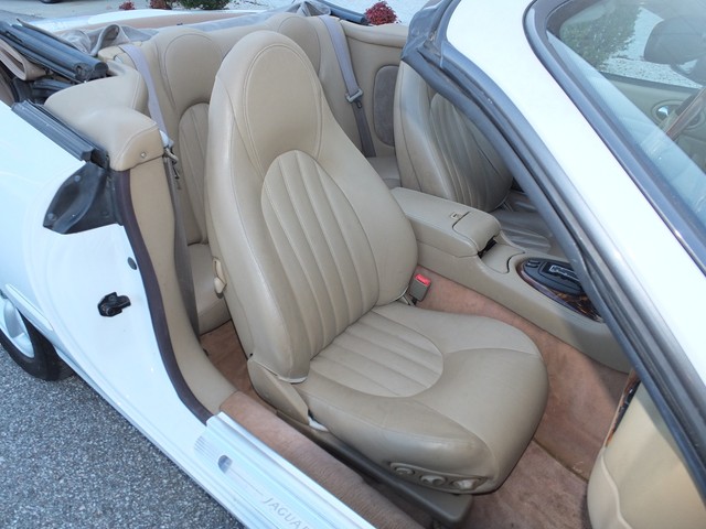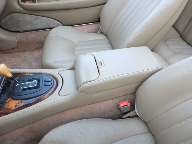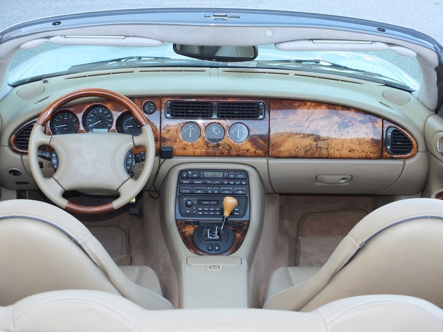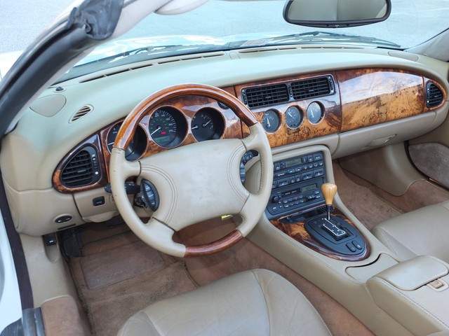 THIS XK8 LOOKS GOOD INSIDE AND OUT!  THE INTERIOR IS CLEAN AND INTACT WITH ONLY SLIGHT DYE WEAR ON THE DRIVER'S SEAT OUTSIDE BOLSTER AND SOME LEATHER DISCOLORATION ON THE STEERING WHEEL.  THE WOOD TRIM AROUND THE SHIFTER HAS A FEW CLEAR COAT CRACKS, BUT NO CHIPS OR PEELING.  THE CENTER VENT'S HORIZONTAL SLATS ARE NOT CONNECTED AND MOVE INDEPENDENTLY OF EACH OTHER (SEE PIC BELOW).  THE HEADLINER IS DIRTY.  THE LEATHER DYE ISSUE IS AN EASY FIX AND THE HEADLINER CAN BE CLEANED, SO THE INTERIOR ISSUES ARE MINOR AND REPAIRABLE WITH LITTLE COST OR EFFORT.  OTHER THAN THE MENTIONED ITEMS, THE INTERIOR LOOKS VERY GOOD!