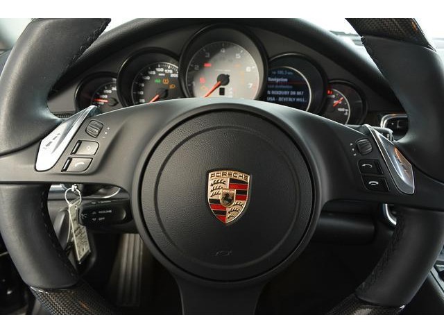 Options include Premium Package Plus, 14-Way Power Seats with Memory, Adaptive Air Suspension with PASM, Heated Seats Front and Rear, Ventilated Front Seats, Park Assist with Reverse Camera, Electric Rear Sunshades, Dynamic Xenon Headlights, Power Steering Plus, Carbon interior Package, Carbon Heated Multifunction Steering Wheel, Bose Audio Package, XM Satellite Radio, CD Changer, 20" 911 Turbo II Wheels, Crest in Headrests Front and Rear.