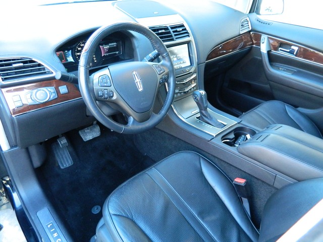 If you are looking for a one-owner SUV, try this outstanding 2011 Lincoln MKX and rest assured knowing that the previous owner took superb care of it. It is nicely equipped with features such as 6-Speed Automatic with Select-Shift, metalic black exterior and Black interior w/Perforated Leather-Trimmed Bucket Seats, 10 Speakers, 20 Wheels, 4-Wheel Disc Brakes, Air Conditioning, Auto-dimming door mirrors, Auto-dimming Rear-View mirror, Automatic temperature control, Brake assist, Delay-off headlights, Driver vanity mirror, Dual front impact airbags, Dual front side impact airbags, Electronic Stability Control, Four wheel independent suspension, Front Bucket Seats, Front dual zone A/C, Fully automatic headlights, Garage door transmitter: HomeLink, Heated door mirrors, Heated front seats, Illuminated entry, Low tire pressure warning, Memory seat, Occupant sensing airbag, Outside temperature display, Overhead airbag, Overhead console, Panic alarm, Panoramic Vista Roof, Passenger door bin, Passenger seat mounted armrest, Passenger vanity mirror, Perforated Leather-Trimmed Bucket Seats, Power door mirrors, Power driver seat, Power passenger seat, Power windows, Radio: Premium AM/FM Stereo/CD/MP3, Rear seat center armrest, Rear window wiper, Remote keyless entry, Security system, SIRIUS Satellite Radio, Navigation system, Speed control, cruise control, Speed-Sensitive Wipers, Split folding rear seat, heated rear seats, Spoiler, Steering wheel mounted A/C controls, Steering wheel mounted audio controls, Telescoping steering wheel, Tilt steering wheel, Traction control, and Ventilated front seats. New Car Test Drive said it ...brakes more authoritatively and more progressively. It rides much quieter on the highway than the previous version. Its wide array of onboard electronics and entertainment systems are clearly among the best in the industry in terms of capability and ease of use... The pin-you-to-your-seat performance of this terrific Lincoln MKX will make it a favorite among our more.