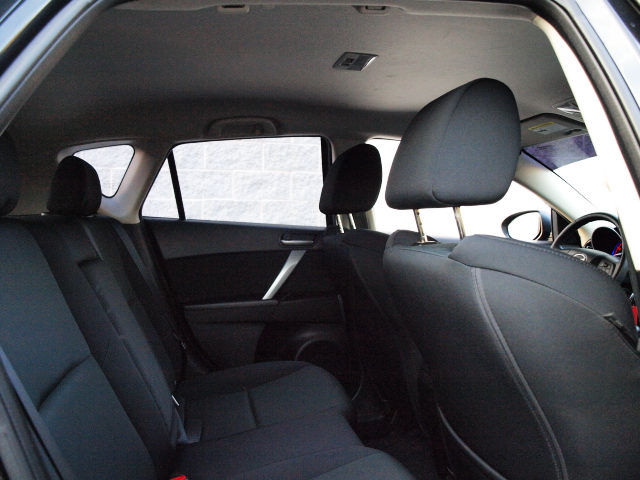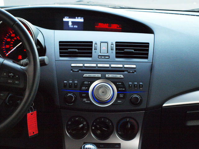 Mazda3 Hatchback Sport with Sport Seats, Power Door Locks, Windows, and Mirrors, Alloy Wheels, Rear Spoiler, Blue Tooth Hands-free Phone System, and Leather Wrapped Steering Wheel with Cruise Control, Audio and Display Controls.