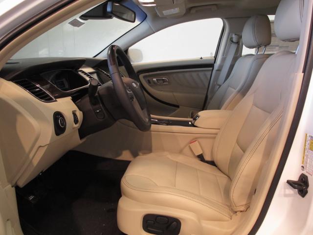 2014 White Platinum Metallic Tri-Coat Limited Taurus. 3.5 Litre TIVCT Gas Engine 6 Speed Select Shift Automatic Transmission Front Wheel Drive. Heated and Cooled Leather front seats, Heated Rear seats, Heated Steering Wheel, Rear Window Power Sunshade, Power Sun Roof, Rain Sensing Wipers, Heated Side Mirrors and Auto Highbeams. Sony Audio Sound System with Sirius and HD Radio. SYNC and Voice Activated Navigation System.   Blind Spot Monitoring System, Reverse Sensing System and Rear View Camera.
