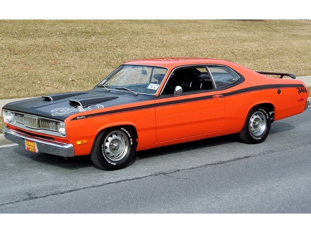 ’72 Plymouth Duster 340 Wedge,Freshly rebuilt matching #’s 340 Wedge V8@360+hp!factory coded manual transmission,factory HD 3:91 ratio 8 3/4” rear differential, correct EV2 coded mirror finish high impact Tor Red paint w/Satin Black hood treatment + 340 Wedge hood callout and side stripes, sharks tooth grille & Go Wing, great looking and correct Black interior, 3 spoke sport steering wheel, great looking chrome & polished stainless trim, full array of factory gauges, great sounding 2.5” Flowmaster dual exhaust, all new suspension ( handles nice now ) factory Rallye wheels w/BFG radial T/A’s, faster than stock, rare and collectable MOPAR, 1 of only 2401 built!