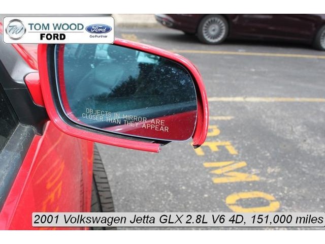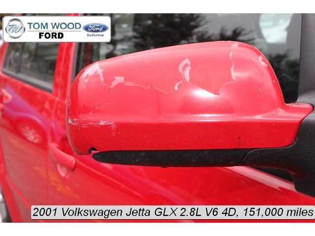 2001 VW Jetta, Red, Automatic, Sunroof, Black Leather in Excellent Shape, Nice Interior,Tires are very Good, Has a few Rock Dings on Hood, No Rust, Passenger Mirror is Cracked, Front Lower Spoiler has Damage on Passenger Side. This is an "AS-IS" vehicle. Call Neal Evans at TOM Wood Ford, 317-476-5668 or neal_evans@tomwood.com