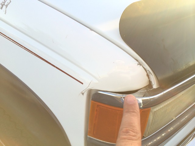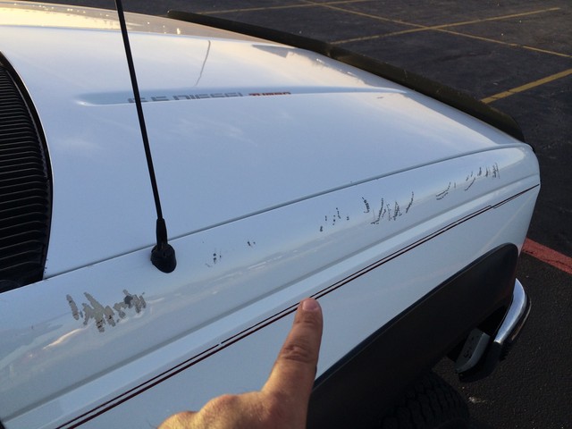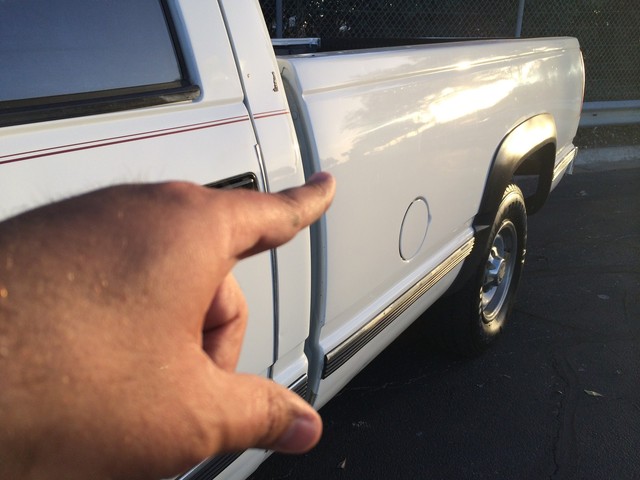 This was a farm truck and it's not in the best shape from outside however the interior is in great shape!! From the outside, there are scratches around and dents on both bumpers. Also the tail gate is inop. The bed has been painted before and it's not the best job. It's a different shade of white and wavy paint job. The interior as you see in the picture is almost new. It's a NON smoker and there is no foul odor or cuts in the seats. Please review all the pictures for a better idea of the condition of the truck.