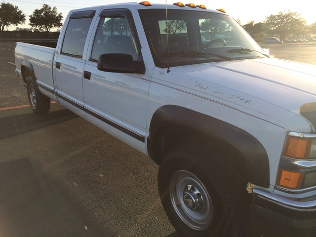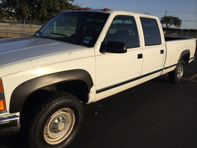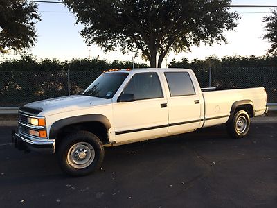 You are looking @ 1 Texas Owner Truck with 99K actual miles!!! It's a 1994 Chevy Silverado 3500 Crew Cab 168.5" W single rear wheel long bed. It's equipped with the 6.5L Diesel engine, 4x4 , 5 speed manual transmission, Towing Bar, Pwr windows and locks. We drove the truck around town for few days to test it out and the engine runs good and all gears shift well but seems like the clutch need to be replaced soon...does not slip or anything but in my opinion the clutch could be more firm. The A/C blows cold and the radio works loud and clear.