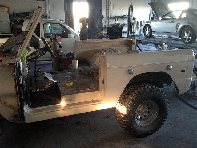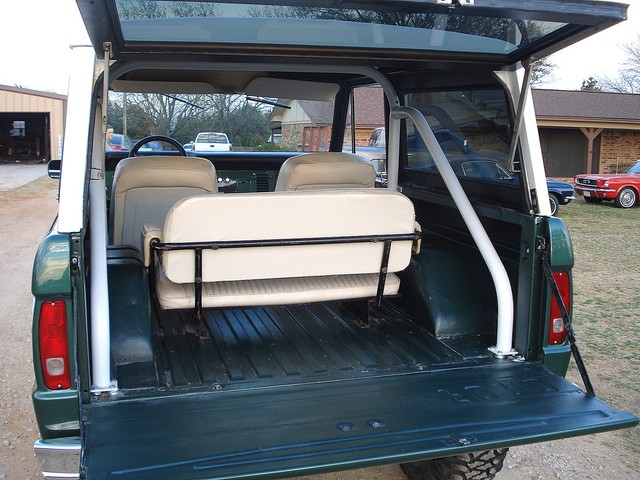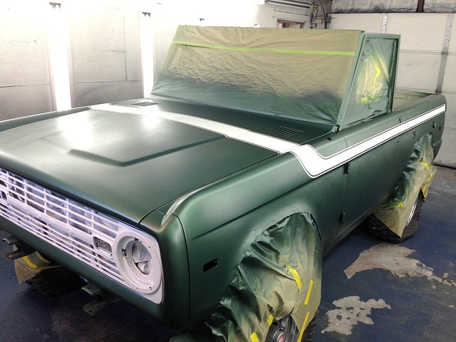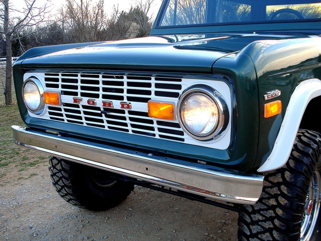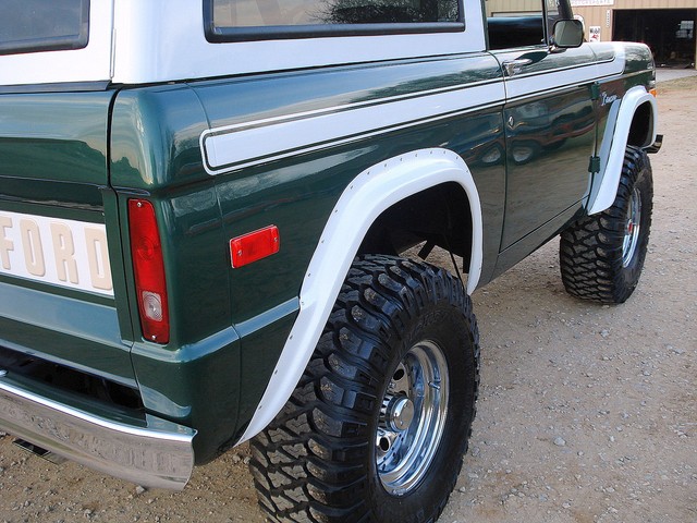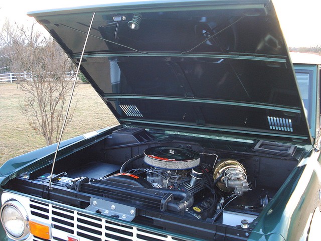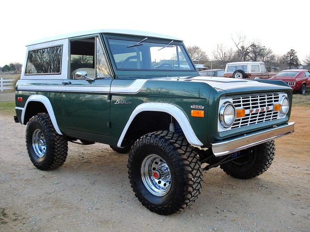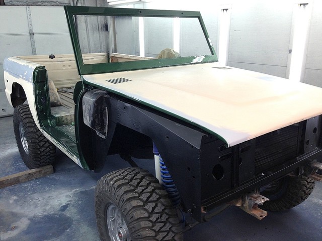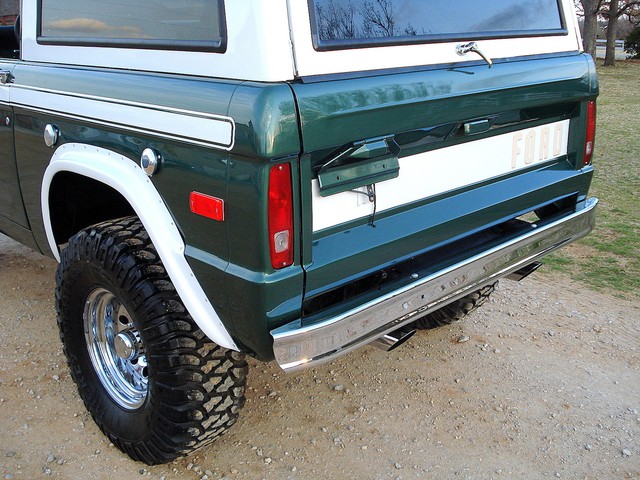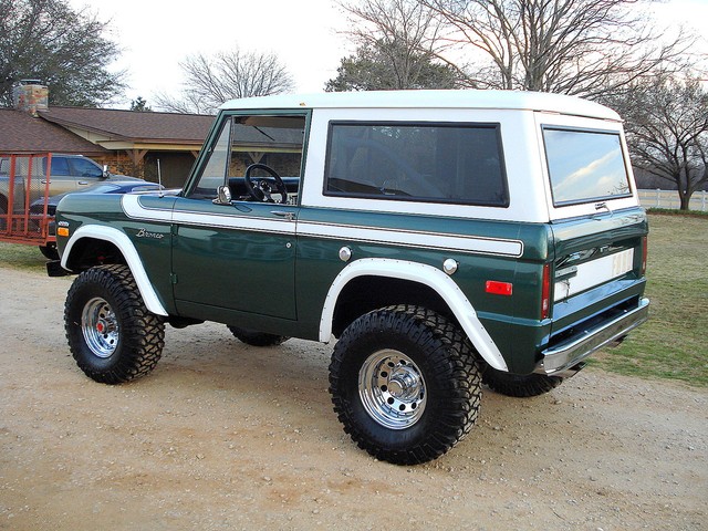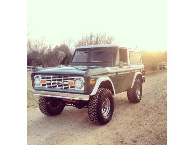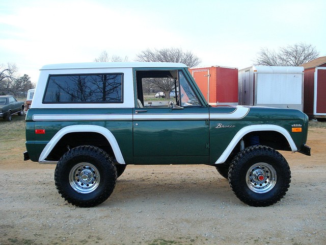 NO RESERVE.  1970 Custom Ford Bronco Restored and Lifted.  This Bronco was purchased by our shop; part way through a restoration by her previous owner.  We completed the restoration and she looks great.  The engine, transmission and power steering were completed when we got the bronco, and we finished up the rest.  We removed the front fenders, grill, hood, doors, and top; repaired any rust that we found with correct replacement metal (we do NOT bondo hide rust).  We painted the top and stripes in bright white, did the exterior in Ford Dark Moss Green and used a colored rock-chip spray on the interior, fender flairs and roll bar to add to her custom look, those areas are all textured.  This Bronco was painted with the glass, doors, fenders, top, hood and gaskets removed.  This was a REAL paint job, not a claimed one.  All glass was installed painted with using new rubber gaskets, doors installed with new hinge pins and fenders with new mounting hardware.  Door latches, window felts and wing windows were removed before paint and new gasket and felt kits installed after paint.  She has a Polished Tilt Aftermarket Steering Column with Power Steering.  This bronco has a floor mounted 3-Speed manual transmission with a Hurst shifter, chrome handle and shift ball.  The top glass and gaskets were removed to paint the top and when installed, new gaskets and the glass was tinted prior to install. We replaced the factory black rubber body mounts with the Red Body Poly Mounts with new hardware.  The 4" Pro-Comp Suspension lift included new blue Poly bushings, Pro-Comp shocks and New Taller Springs. She drives like a typical lifted Bronco, running 35" Mickey Thompson Baja Tires and a 4" Lift.  Please call Ron (me) at 682-333-7433 with any questions.  I have included some before paint pictures at the bottom.  This is not an average priced claimed restoration Bronco, this was a complete body off build and is selling at A REAL NO RESERVE.  Check out the YouTube Video above the description.