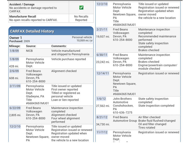 We often use these services to check a vehicles background.  Carfax and Autocheck are wonderful services,  but they have their limitations.  Many times they will show more “owners” than we may state a vehicle has had.  This is because they are an information service only.  They have never seen the car, owned the car,  and have no other information about the car than what is reported from different agencies.  All of this information is originally hand entered into their databases at their source and mistakes and inconsistencies will occur !  For example when a dealer such as ourselves purchases a vehicle they may pick it up as a new owner when this is of course not the case as dealers are not end users.  Also they often contain mileage errors and inconsistencies that appear to make little sense.  Just like any computer generated information report you need to know how to read the report & when to read between the lines. Having seen thousands of these over the years we can help you understand the information listed in these reports,  just ask.