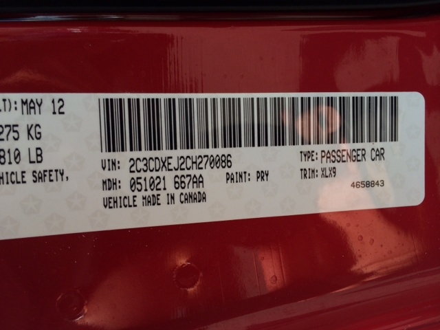 • VIN: 2C3CDXEJ2CH270086