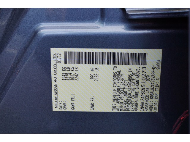 VIN: 1N4AL2AP8CN510273   Interior Color: Black