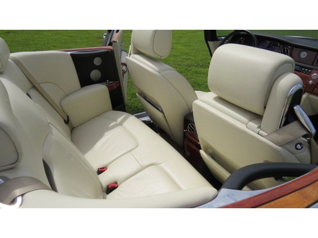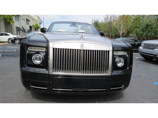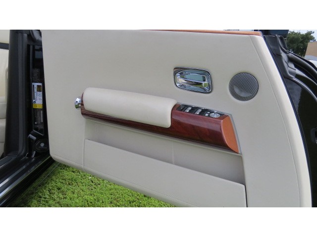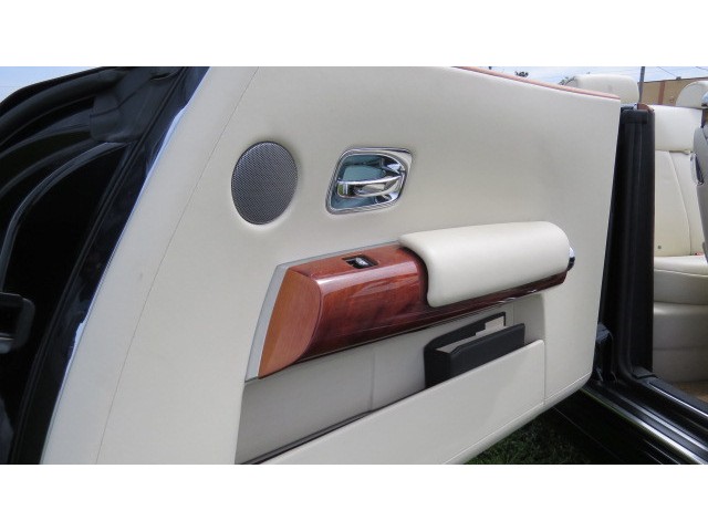 This masterpiece Rolls Royce Drop head Phantom is Finished in Diamond Black and complimented with an ultra luxurious cream light and black leather interior adding the light finish Wood . The added Factory Option Brushed steel & Teak deck Pk, Automatic Push Button Open/Close Doors , Self Serve Bar and Fridge in the Truck MAKE this HEAD TURNER Rolls Convertible just UNIQUE.