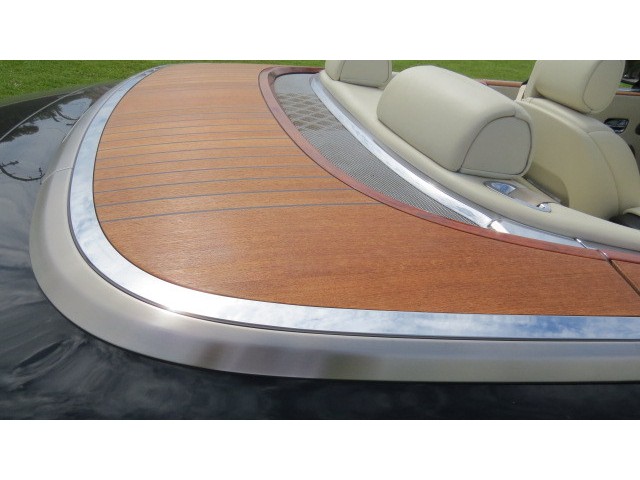 Visually, the Drop Head is distinguished by the teak deck covering the convertible roof and the stainless-steel-finished hood and windshield surround.