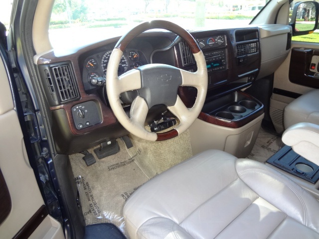 This 2007 Chevy Express Regency Conversion Van is Full Equipped with all the options including: Full Power Package, Remote Keyless Entry, Heated Leather Seats, Electric Folding Bed, Gorgeous Wood Grain throughout the interior, Cooler With Drink Warmer and Drink Cooler, Chrome everywhere, TV/DVD Package with infared technology, Dual Air Conditioning, Two CD Soundsystems, Surround Sound, Flexsteel Captain Chairs, Idirect Lighting Packaging, Running Boards, and Much Much More. There is too much to list. This van is a exquisite. The engine and transmission are running smooth. This van drives nice and straight down the road. The exterior is gorgeous. The custom paint shines like new and the body is laser straight. There is only very little wear and tear for the year and mileage. The interior is immaculate. The leather seats and carpet are very fresh. This is a non smoker! The electric bed folds down smoothly. The van has the original floor mats and owner's manual to go with it. The michelin tires have plenty of life left on them. There is not much else to say. This van is one of a kind and absolutely gorgeous. Don't let is get away. It's ready to go today. Please let us know if you have any questions or concerns. Please Call Jeff or Ken at 954-561-2499 or email us at usedcars@suprememotorsfla.com. We are happy to assist you at any time.