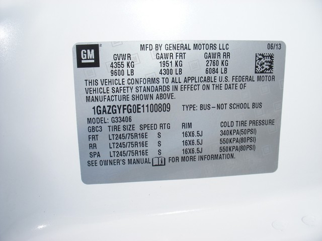 2014 Chevrolet Express 3500 12 passenger van. This vehicle is GM Certified and would have bumper to bumper warranty until 06/26/2017 or 48,009 miles and powertrain warranty until 06/26/2018 or 100,009 miles. The Express van is equipped with power windows and locks, tilt steering wheel with cruise control, power drivers seat, remote entry, rear air and heat, rear vision camera, 6.0L V8 engine with automatic transmission.