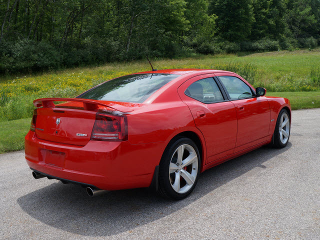 For the ultimate in a performance sedan, we present the Dodge Charger SRT8. Powered by a 6.1 liter Hemi V8 engine with a track-worthy 425 horsepower and 420 lb-ft of torque connected to the shiftable automatic heavy duty transmission. Behind the SRT specific wheels is a specially tuned suspension system, lowered for high cornering g's. The interior features SRT8 only accents, dual temperature controls, and heavily bolstered heated front performance seats trimmed in black with red stitching. Rev up the Pioneer sound system and this performance machine rocks. Exterior design embellishments kick this machine up more than a notch with features like trunk lid spoiler, SRT8 badging, and huge dual exhaust tips. And what is a performance machine without a sunroof? Of course, this Charger has that and low miles, too! Call Brian for your free vehicle history report. www.JunctionAutoFamily.com