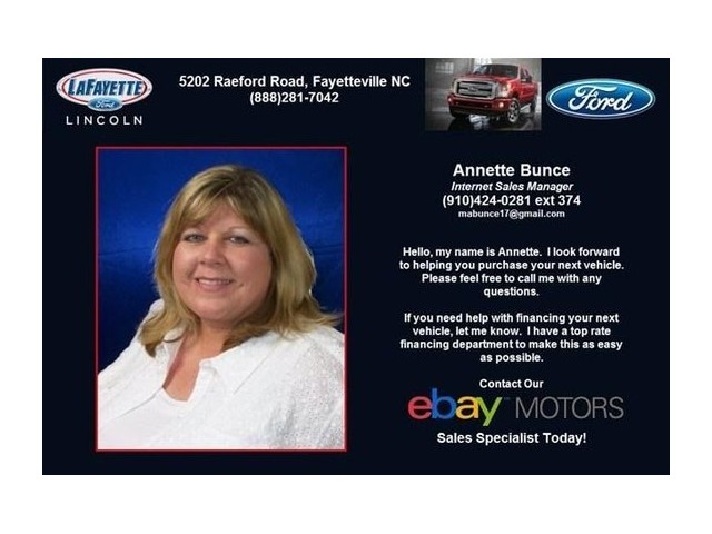 Welcome to LaFayette Ford! Located in Fayetteville, NC, LaFayette Ford is proud to be the only family owned and operated Ford Lincoln dealer in the area. We proudly serve Fort Bragg, Sanford & Southern Pines NC. From the moment you walk into our showroom, you'll know our commitment to Customer Service is second to none. We strive to make your experience with LaFayette Ford a good one – for the life of your vehicle. Whether you need to Purchase, Finance, or Service a New or Pre-Owned Ford, you’ve come to the right place. Shop where we treat you like family! Call 888-281-7042 for your No-Obligation Internet Price Quote from our Internet Department.