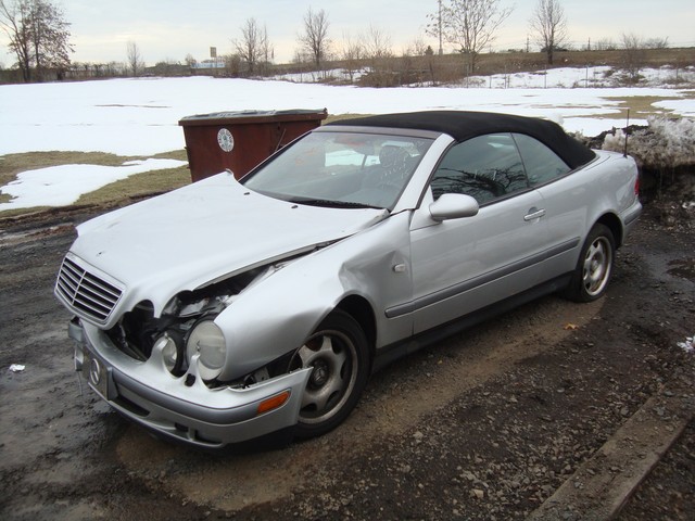 As seen in the pictures down below this 1999 Mercedes CLK320 Power Convertible has sustained frontal damage. This vehicle was directly purchased from insurance auctions for resale. No middle man involved. We have the salvage certificate of title (no-liens) at hand and ready to transfer to the new owner. Such vehicles can be legally returned back to the roads after repairs and your state motor vehicles inspection. Damaged areas are clearly shown in the pictures below.  All airbags are good. We could not get the car started. There is some sort of an electrical short or bad ground hence no power comes to the car when a jump box is used at the battery which is usually dead on these cars. It did however seem to power and start at some point since the salvage auction (where we acquire such cars) had it running at some point and it was sold as a run/drive vehicle. We have posted down below a photo of the digital cluster showing the mileage, this photo was taken by the salvage auction at some point right after the accident. We noticed some wires cut under the hood which might be related to the problem. The engine is not damaged from the accident and still has oil. All airbags good. Soft top in good condition. Other areas of the exterior in good condition with minor scuff marks. Overall paint still has the original shine. No signs of any previous paint work. Interior is clean and black leather seats in great condition as seen in the photos. Soft top in good condition. Low mileage Benz, either fix it or use it for parts. See many photos down below for overall condition of the vehicle and please ask any questions you might have before making a bid or purchase and not after.