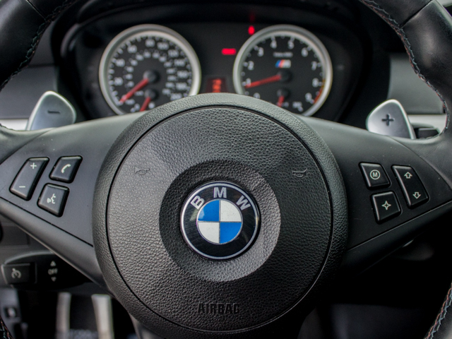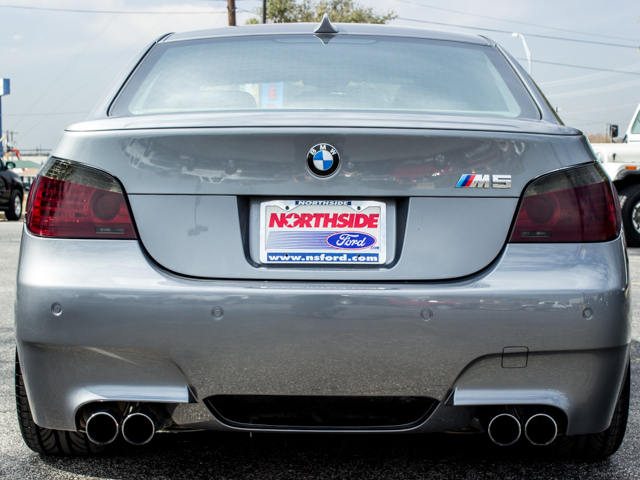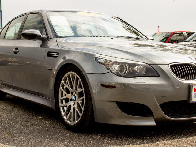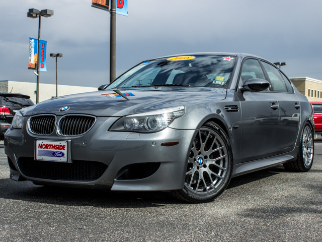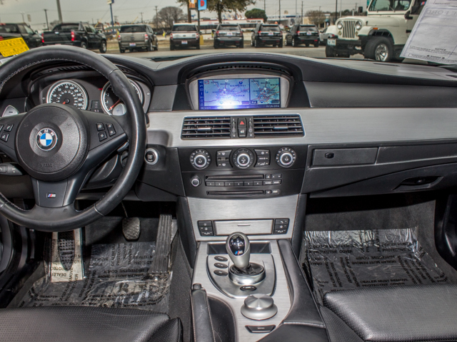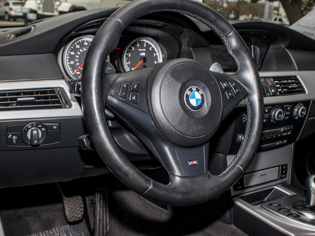 Clean Carfax!! And wow. Nav! Stick shift! Who could say no to a simply outstanding car like this wonderful 2008 BMW M5? It is nicely equipped with features such as Clean Carfax!!, Wow, 13 Speakers, 4-Wheel Disc Brakes, ABS brakes, Air Conditioning, Alloy wheels, AM/FM radio, Anti-Theft AM/FM Stereo/CD Audio System, Anti-whiplash front head restraints, Auto tilt-away steering wheel, Auto-dimming door mirrors, Auto-dimming Rear-View mirror, Automatic temperature control, Brake assist, Bumpers: body-color, CD player, Delay-off headlights, Driver door bin, Driver vanity mirror, Dual front impact airbags, Dual front side impact airbags, Electronic Stability Control, Emergency communication system, Extended Merino Leather Seat Upholstery, Four wheel independent suspension, Front anti-roll bar, Front Bucket Seats, Front Center Armrest, Front dual zone A/C, Front reading lights, Fully automatic headlights, Garage door transmitter, Head restraints memory, Headlight cleaning, Heated door mirrors, Heated front seats, Heated Front Sport Bucket Seats, High-Intensity Discharge Headlights, Illuminated entry, Leather Shift Knob, Leather steering wheel, Low tire pressure warning, Memory seat, MP3 decoder, Navigation System, Occupant sensing airbag, Outside temperature display, Overhead airbag, Panic alarm, Passenger door bin, Passenger vanity mirror, Power adjustable front head restraints, Power door mirrors, Power driver seat, Power moonroof, Power passenger seat, Power steering, Power windows, Radio data system, Rain sensing wipers, Rear air conditioning, Rear anti-roll bar, Rear reading lights, Rear seat center armrest, Rear window defroster, Remote keyless entry, Reverse sensing system, Security system, Speed control, Speed-sensing steering, Speed-Sensitive Wipers, Spoiler, Sport steering wheel, Steering wheel memory, Steering wheel mounted A/C controls, Steering wheel mounted audio controls, Tachometer, Telescoping steering wheel, Tilt steering wheel, Traction control, Trip computer, Variably intermittent wipers, and Weather band radio. Power is nothing without control, and the incredible brakes on this M5 means that you are always just a quick pedel press away from bringing life to a halt.
