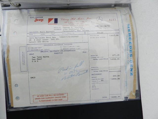 1973 MEREDES-BENZ 300 SEL 4.5ORIGINAL OWNER ORIGINAL MILES LEATHER MOONROOF MINT