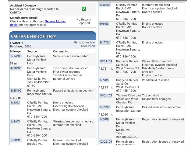 We often use these services to check a vehicles background.  Carfax and Autocheck are wonderful services,  but they have their limitations.  Many times they will show more “owners” than we may state a vehicle has had.  This is because they are an information service only.  They have never seen the car, owned the car,  and have no other information about the car than what is reported from different agencies.  All of this information is originally hand entered into their databases at their source and mistakes and inconsistencies will occur !  For example when a dealer such as ourselves purchases a vehicle they may pick it up as a new owner when this is of course not the case as dealers are not end users.  Also they often contain mileage errors and inconsistencies that appear to make little sense.  Just like any computer generated information report you need to know how to read the report & when to read between the lines. Having seen thousands of these over the years we can help you understand the information listed in these reports,  just ask.