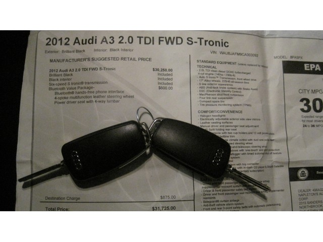Have a look at this non smoking 1-owner accident free 2012 AUDI A3 Hatchback Turbo Diesel Engine TDI S-Tronic with Automatic Transmission.  This is a Very nice and Extremely well Maintained (Carfax Certified) 2012 AUDI A3 Turdo Diesel Sedan we have for sale.  This Beauty is powered by a Strong Turbo Diesel Engine that gets over 42 MILES PER GALLON!!  It was Just Serviced at The Audi Dealer Here in Houston Texas with oil and Oil filter just changed and All Fluids Topped Off.  This AUDI A3 has Brand New Pirelli tires in the Rear , and The Front Tires are about 85%, practically New.  The Transmission is Smooth, and The Engine is Very powerfull and The Body is in Mint Condition, Excellent inside out and Extremely clean, and Well Maintained.  The Front End is Tight with no Weird Noises and The steering is on point.  This 2012 Audi Drives Like New, with only 56,000 miles on it, and Babied and Just serviced with Oil Just Changed at the Audi Dealer.  This Audi A3 TDI is described exactly as it appears, we do not want to waste your time or ours so please call us at 832-526-6099 or email us at alsabet27@yahoo.com with any questions you may have regarding this Pampered Beauty.  We do get Graet Quotes on Shipping, the carriers are Fully Door To Door Insured From Our Door Step To Your Door Step.  Or we can Pick you us At the Airport with the Vehicle.